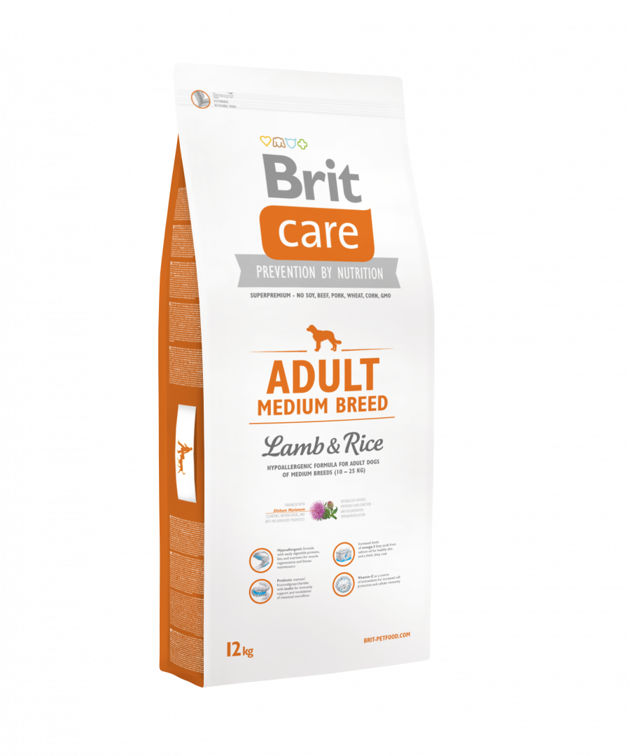 BRIT CARE ADULT MEDIUM BREED 12KG - (Kuzu ve Pirinç - Orta Irk Yetişkin Köpek Maması)
