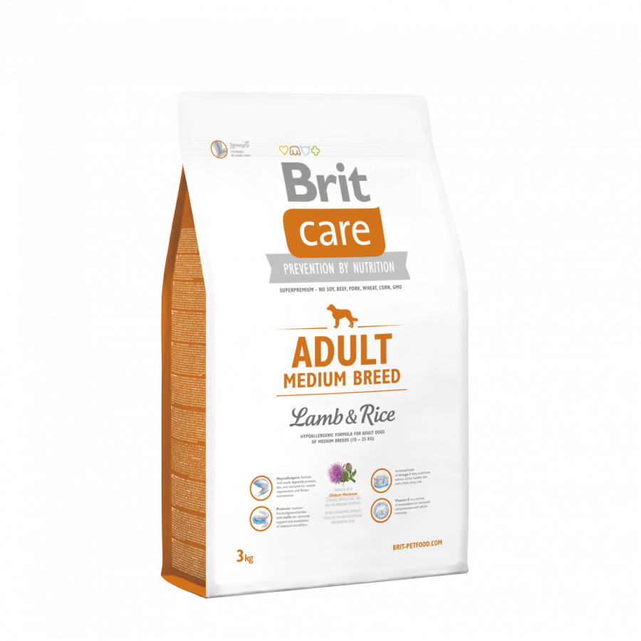 BRIT CARE ADULT MEDIUM BREED 3KG - (Kuzu ve Pirinç - Orta Irk Yetişkin Köpek Maması)
