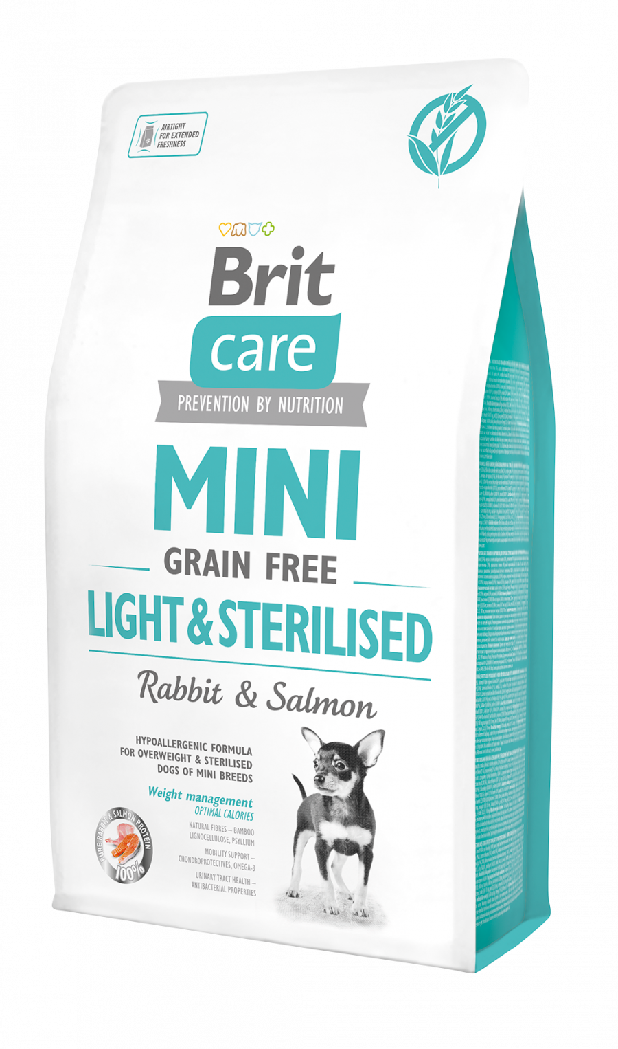 BRIT CARE MINI LIGHT STERILIZED 2KG (Tavşan ve Somonlu - Kısırlaştırılmış, Kilo Kontrolü - Yetişkin Mini Irk Köpek Maması